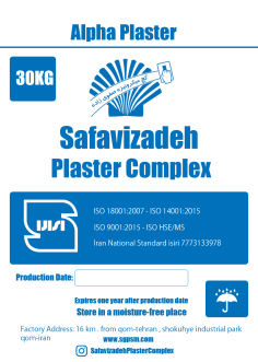 The Biggest producer of Alpha plaster in the world by capacity of 100 000 tons per year and, in accordance with ISO 14001-18001-9001 and Iran national standard ISIR17773133978.