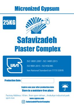 All products of Safavizadeh Gypsum Complex are based on laboratory requirements and required standards for their specific applications and are registered with the company and distributed throughout Iran. Therefore, the Safavizadeh Gypsum Complex reserves the right to pursue any misuse and misuse by competent authorities.